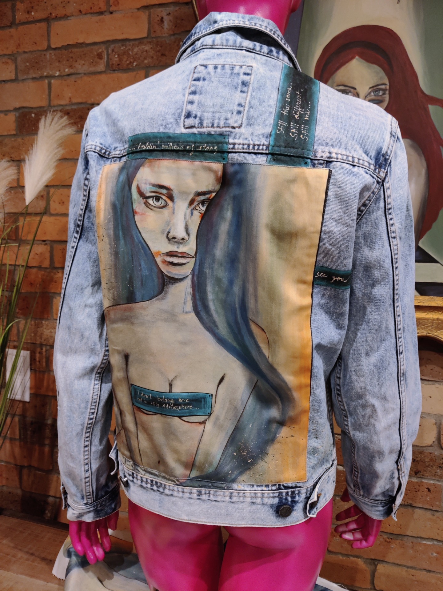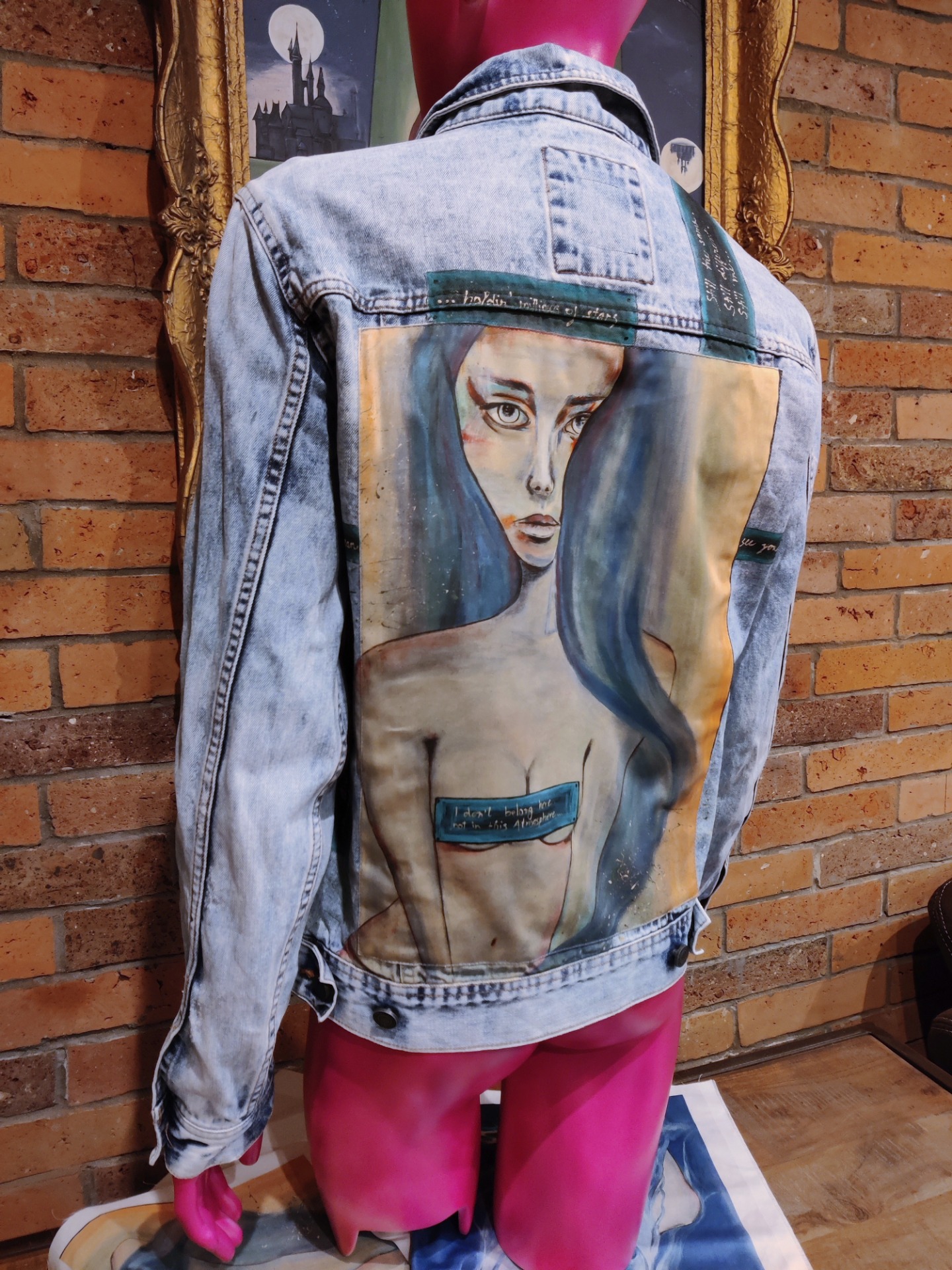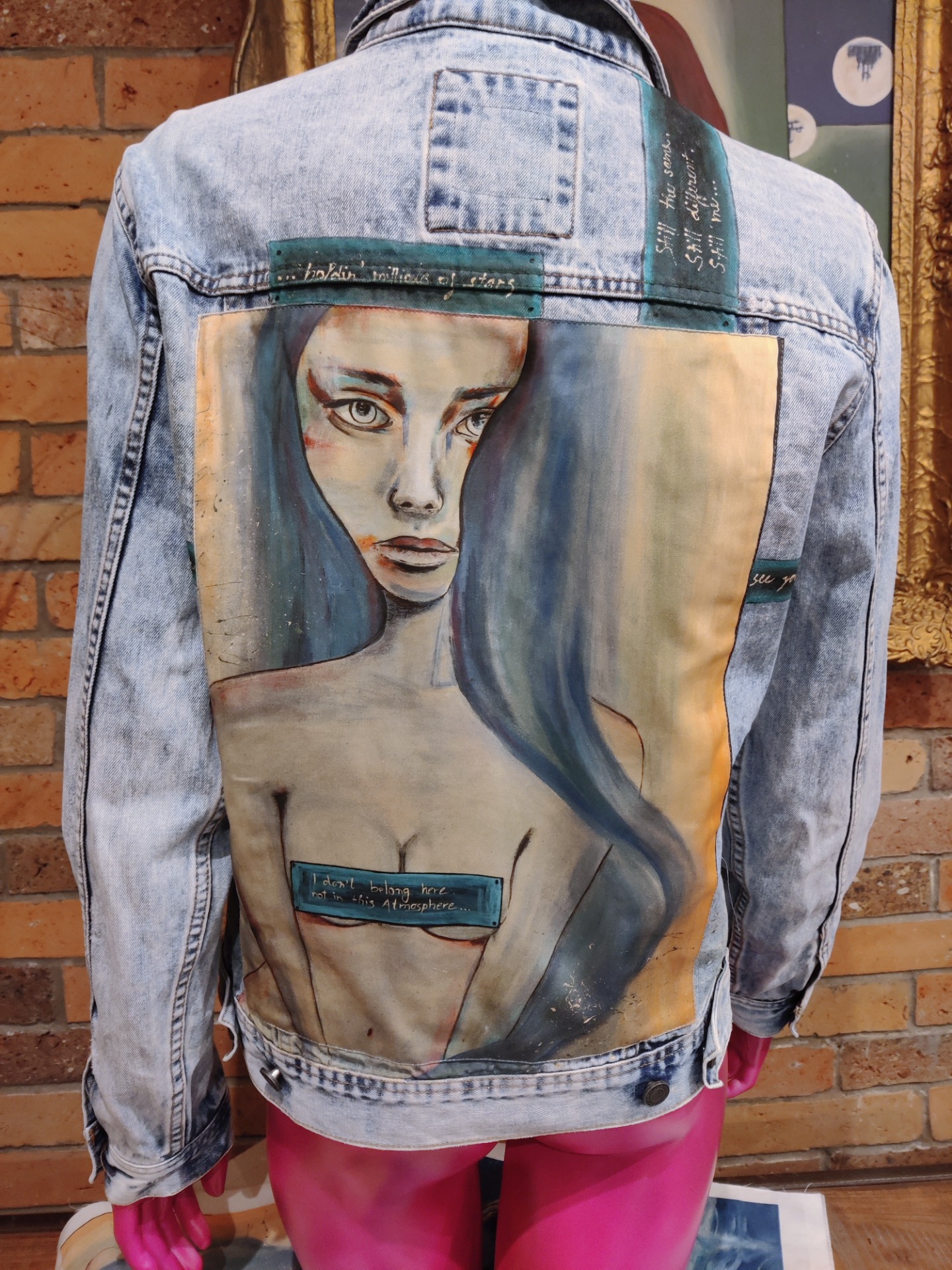 Maľovaná rifľová bunda je dostupná len ako 1 ks. Každý dizajn je jedinečný. Ide o upcyklovaný kus oblečenia, ktorému bol vdýchnutý nový život.