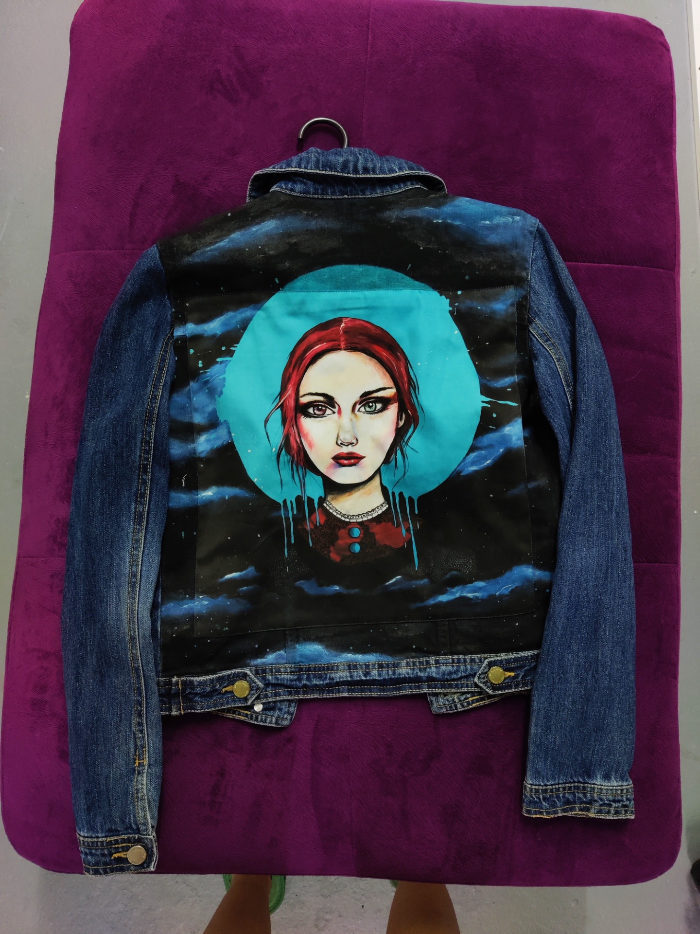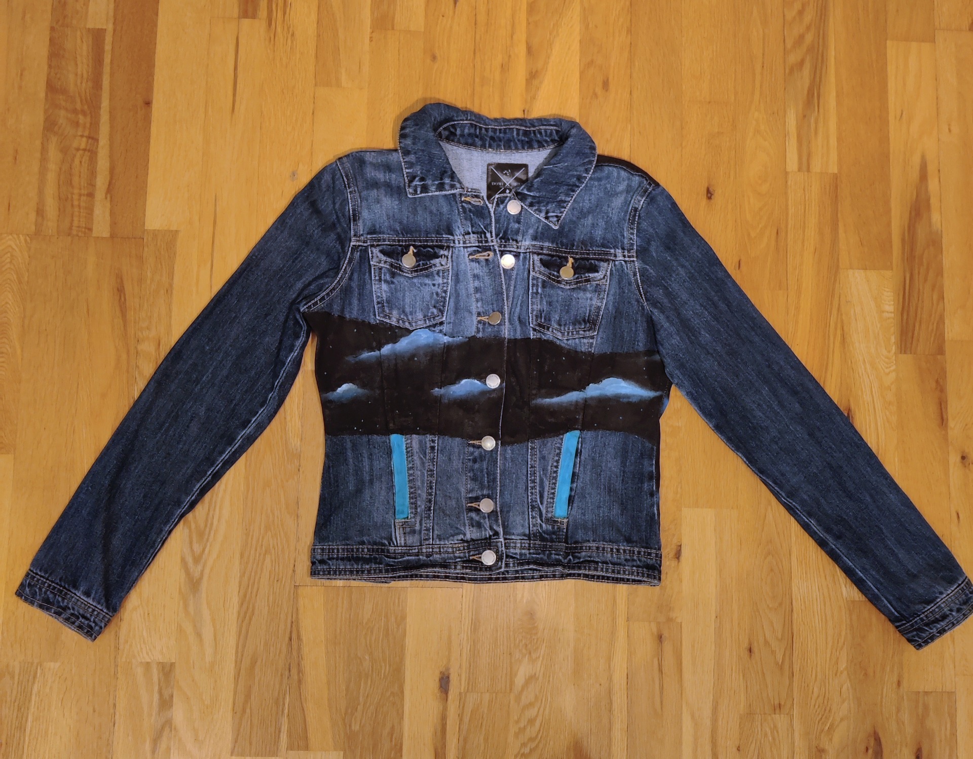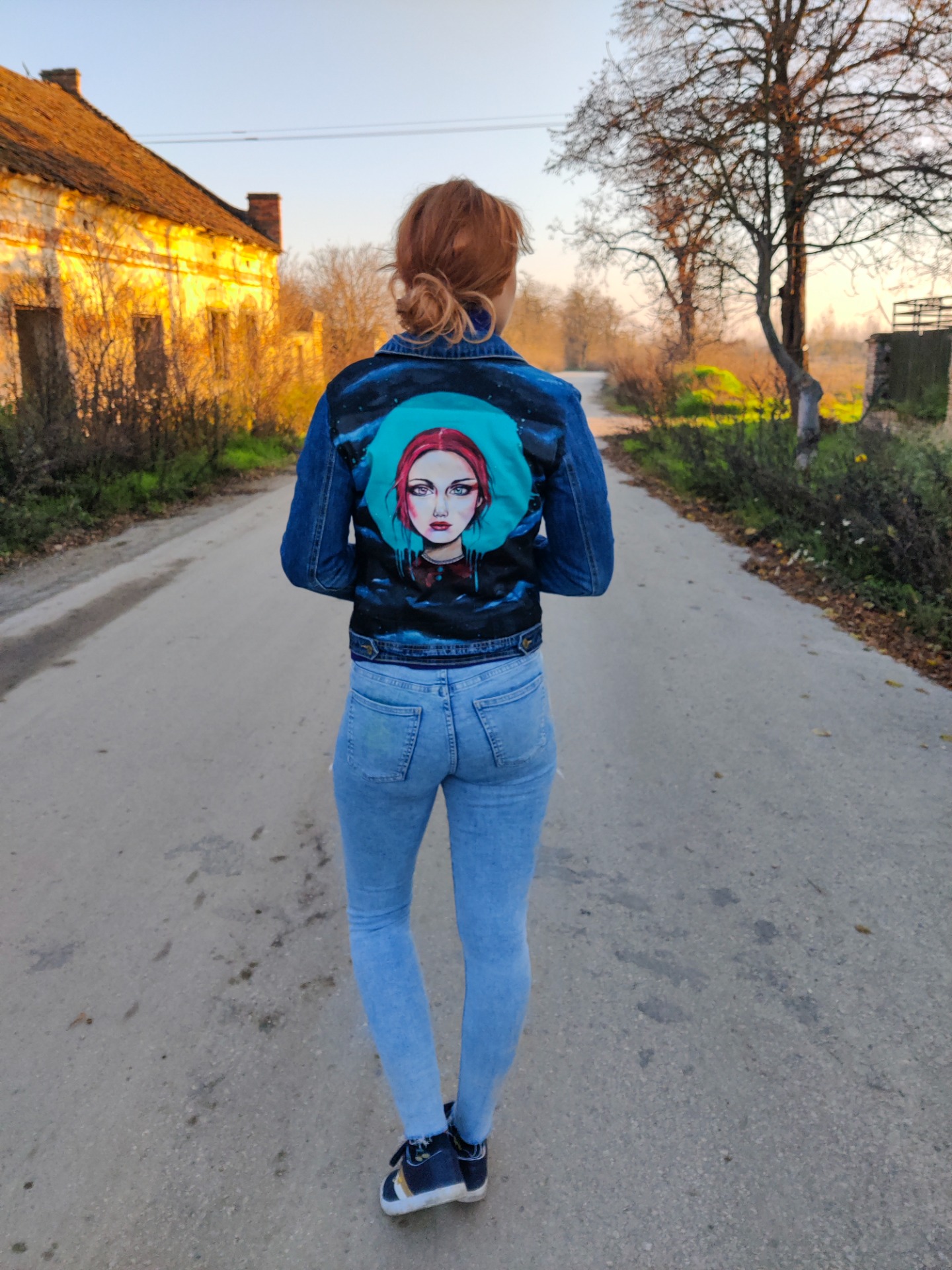 Maľovaná rifľová bunda je dostupná len ako 1 ks. Každý dizajn je jedinečný. Ide o upcyklovaný kus oblečenia, ktorému bol vdýchnutý nový život.