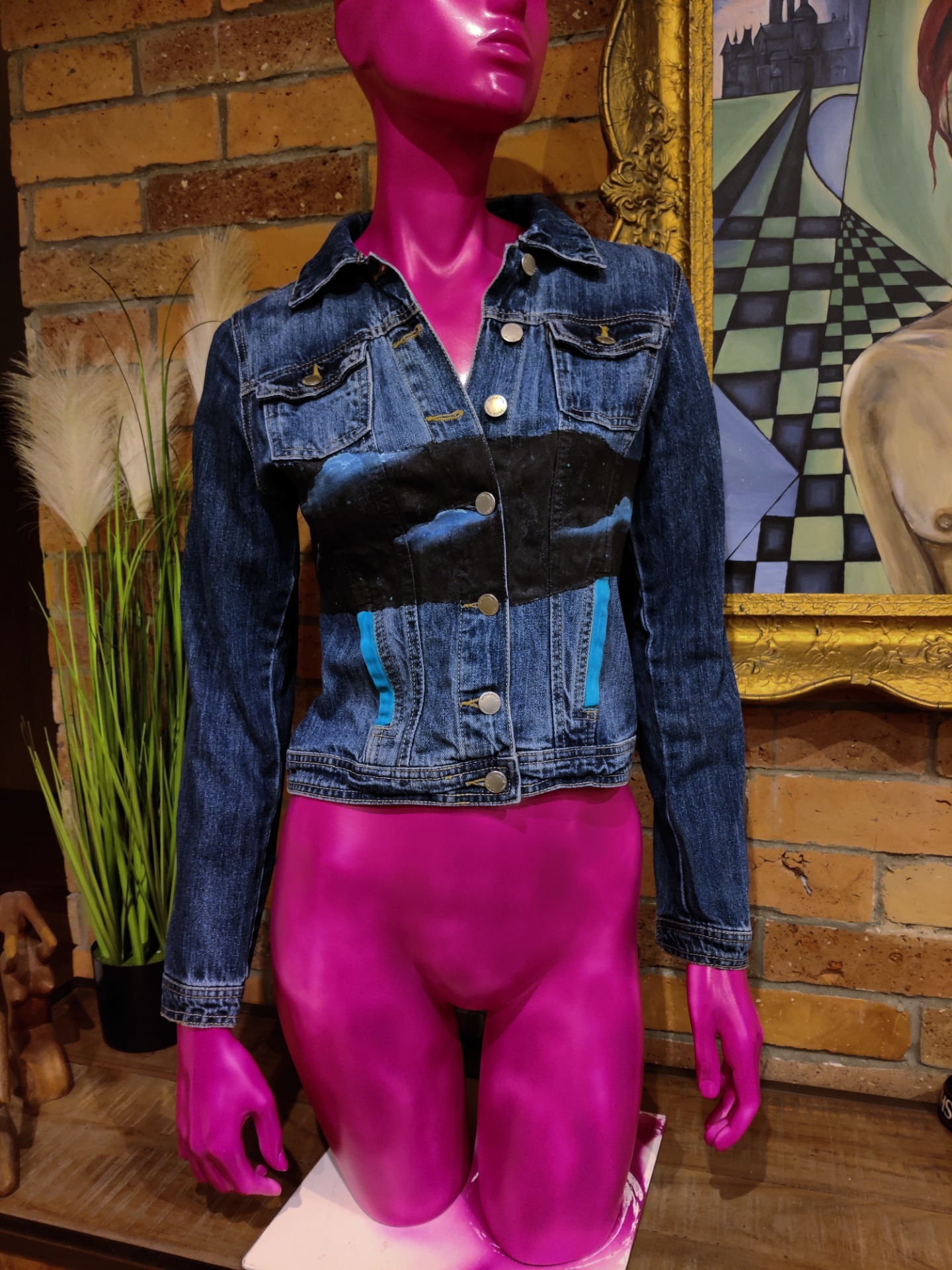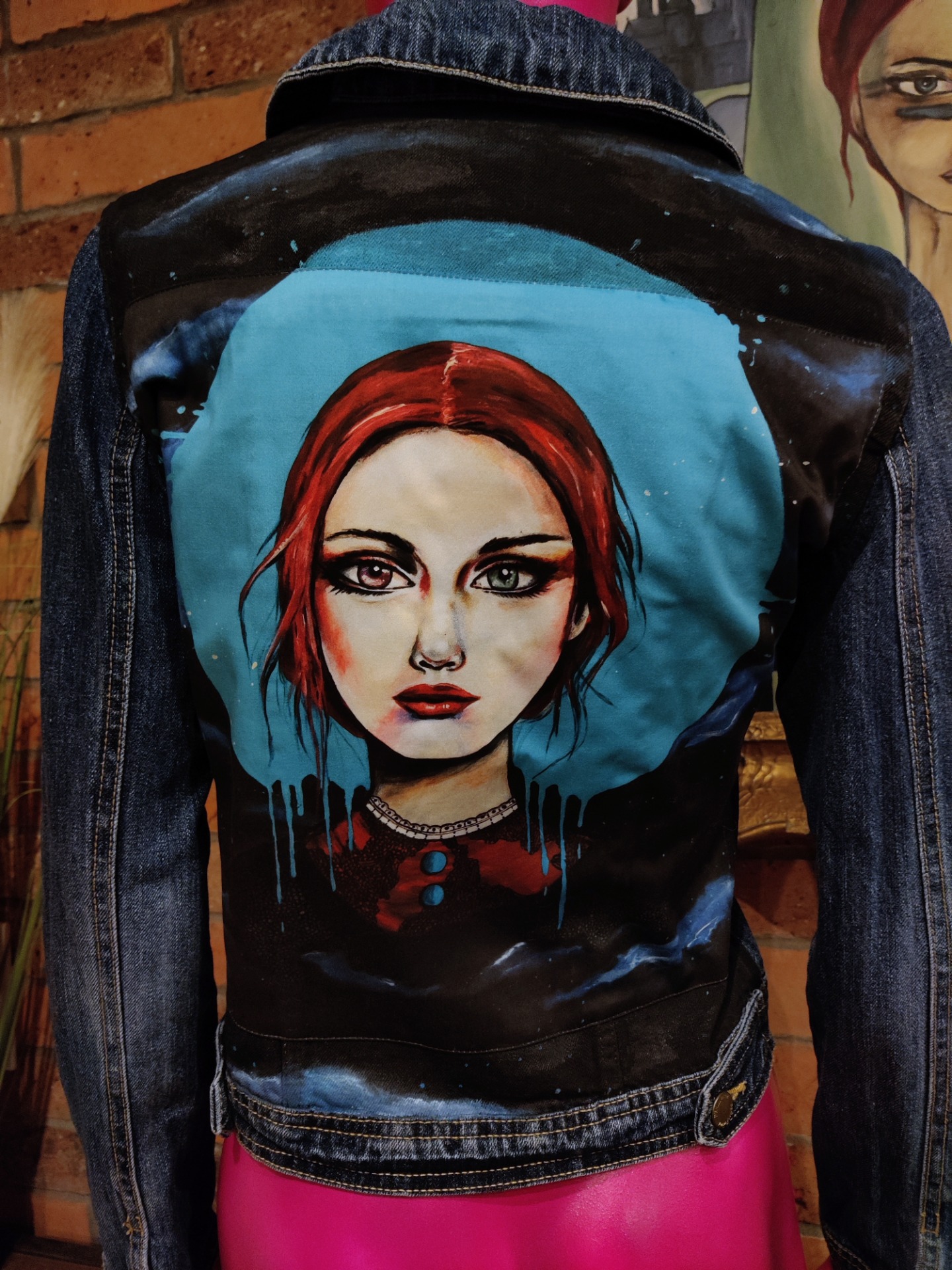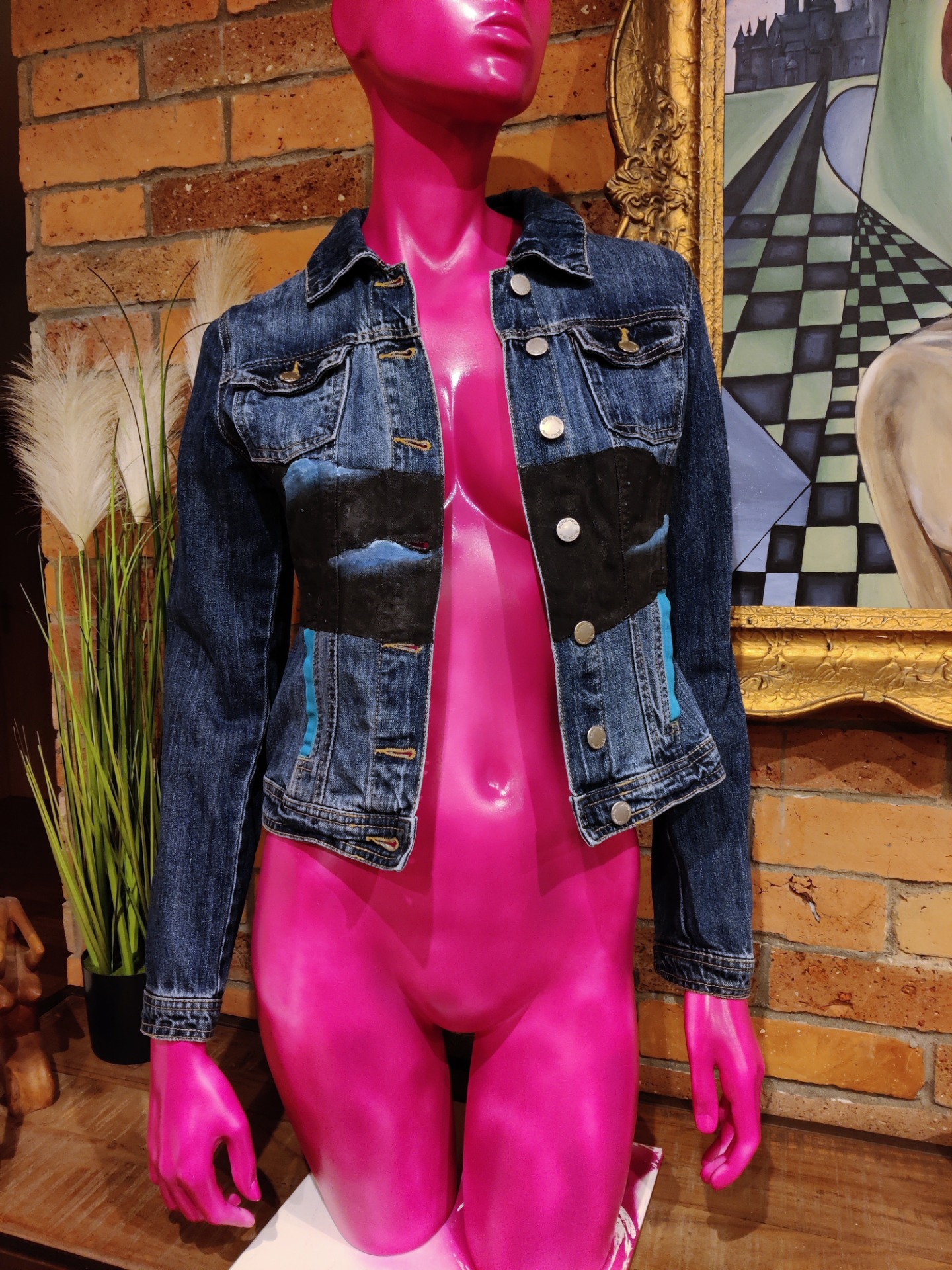 Maľovaná rifľová bunda je dostupná len ako 1 ks. Každý dizajn je jedinečný. Ide o upcyklovaný kus oblečenia, ktorému bol vdýchnutý nový život.