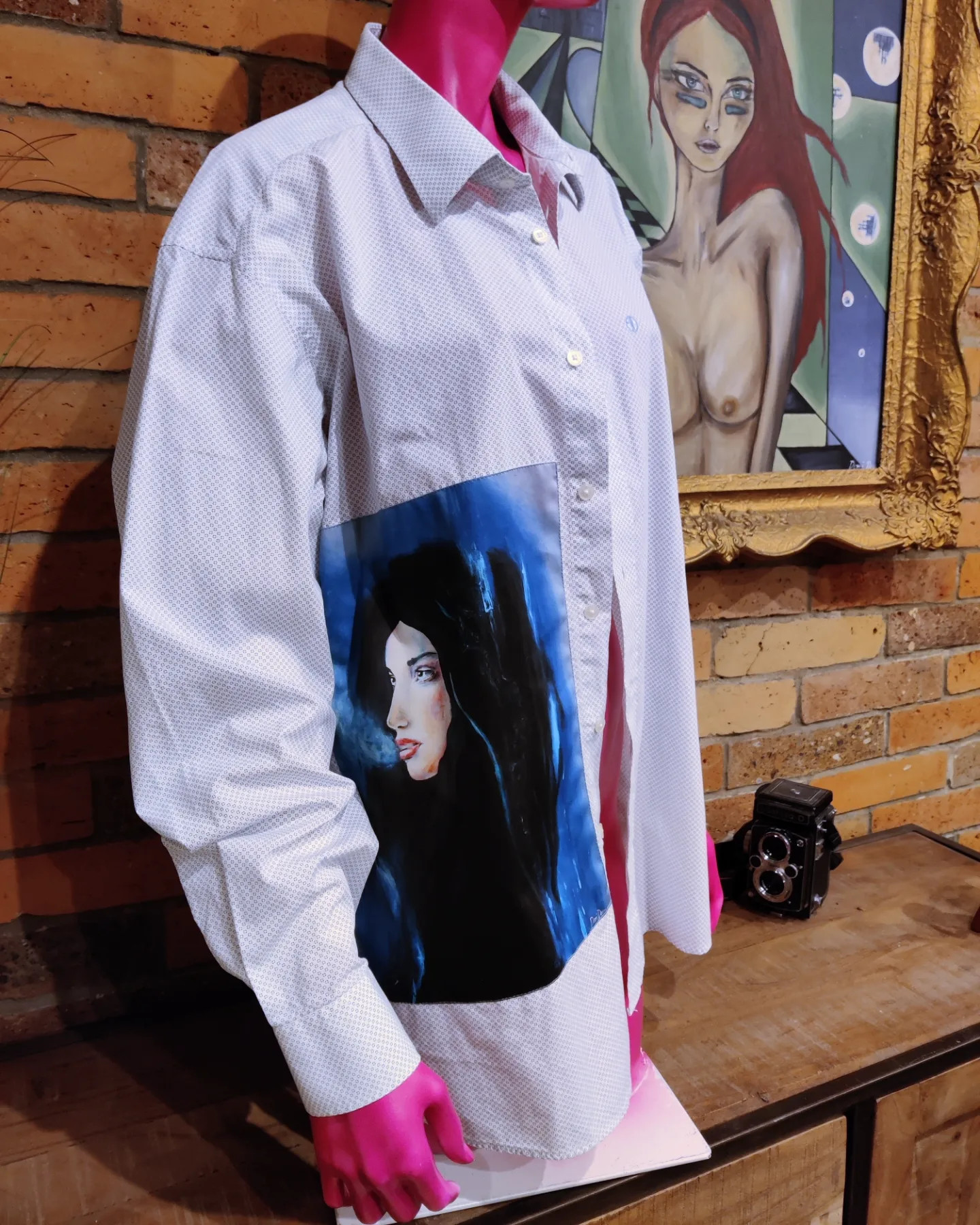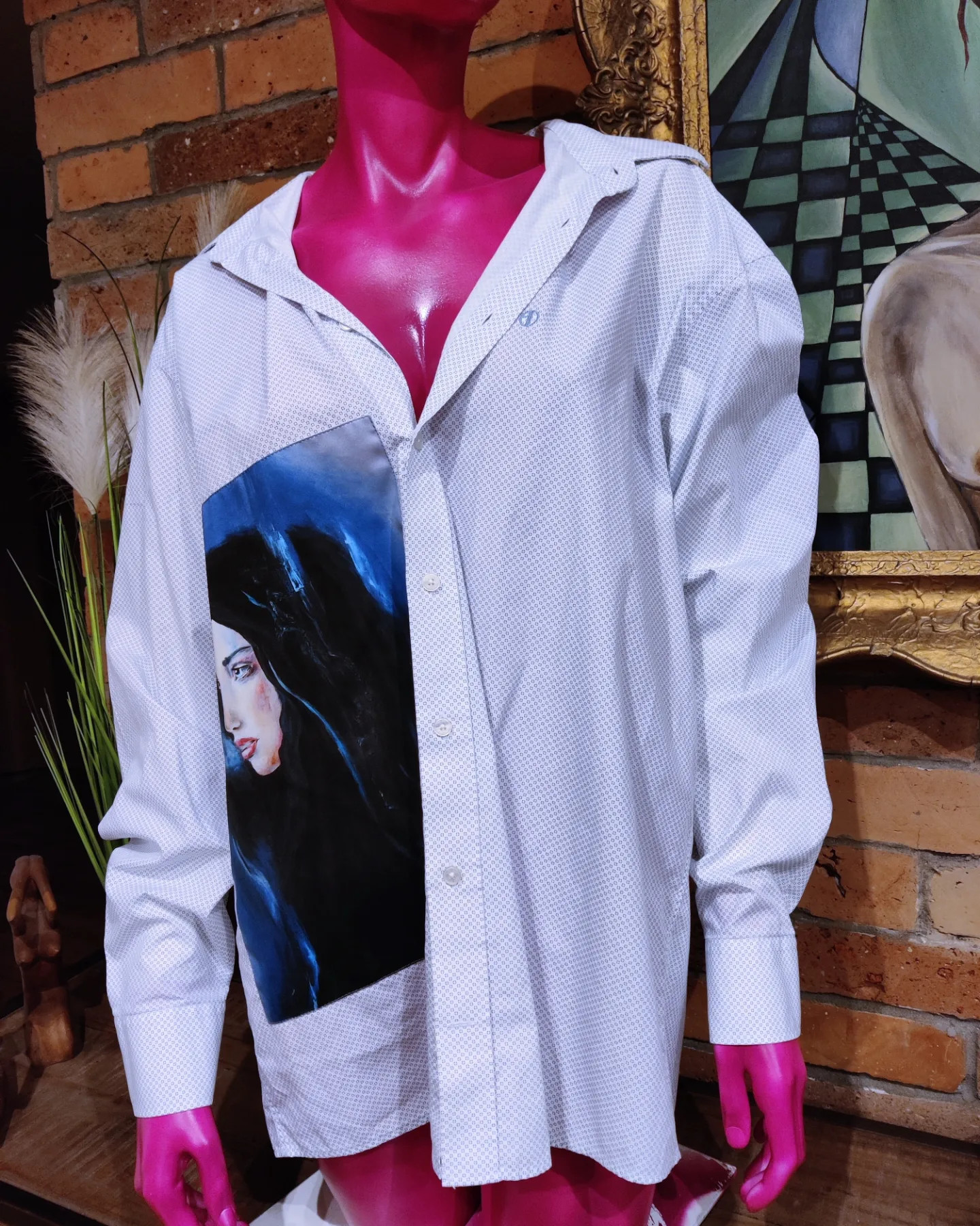 Elegantná oversized košeľa, je doplnená art prvkom v podobe dominantného autorského obrazu, vytlačeného na látku. Tento kúsok je kombináciou elegantného a klasického na jednej strane a originálneho a jedinečného na tej druhej. Taká je ART oversized košeľa Just breathe, ktorá je inšpirovaná Snovou kolekciou obrazov, z dielne DOMI DEAN ART.