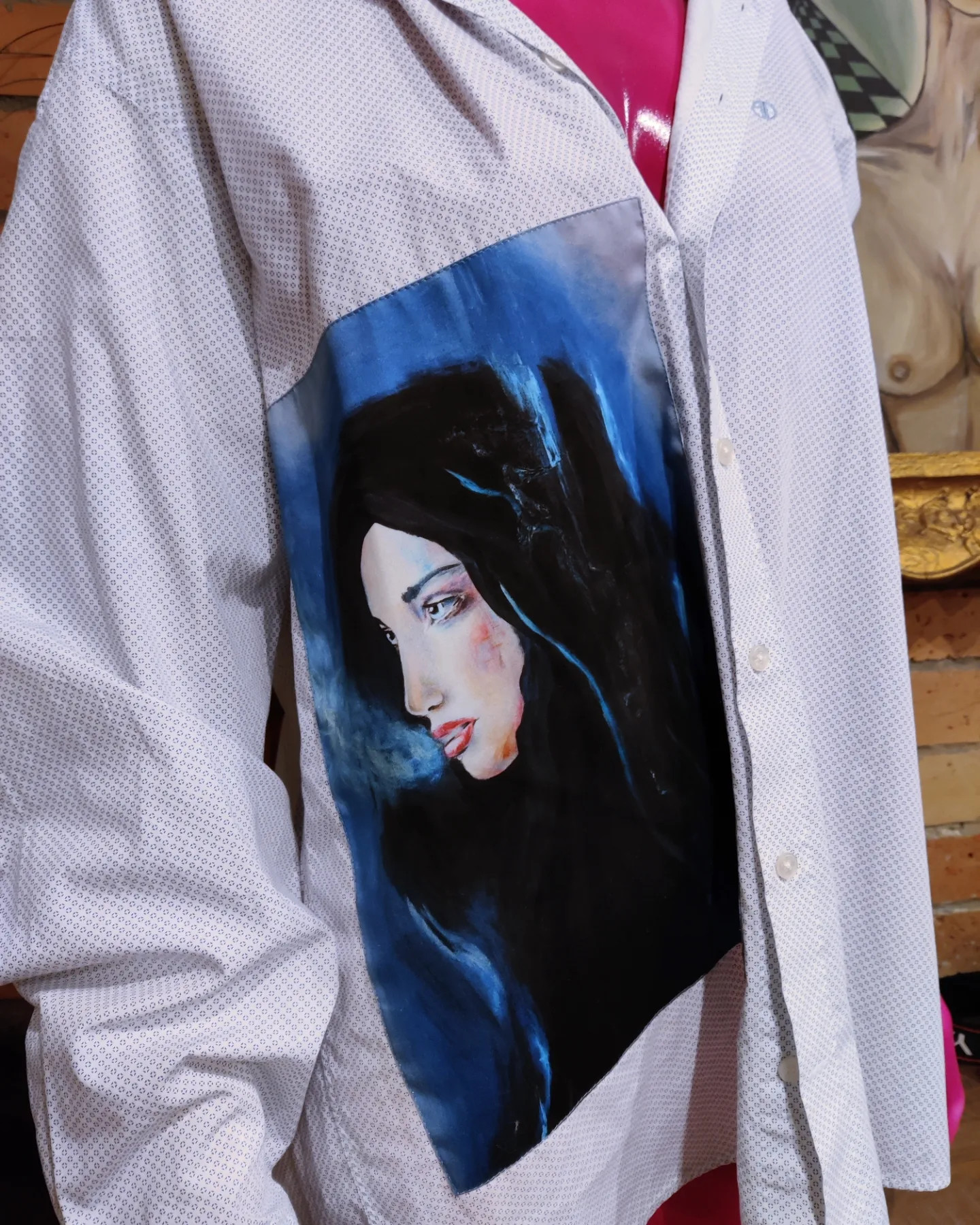 Košeľa je dostupná len ako 1 ks. Každý dizajn je jedinečný. Ide o upcyklovaný kus oblečenia, ktorému bol vdýchnutý nový život.