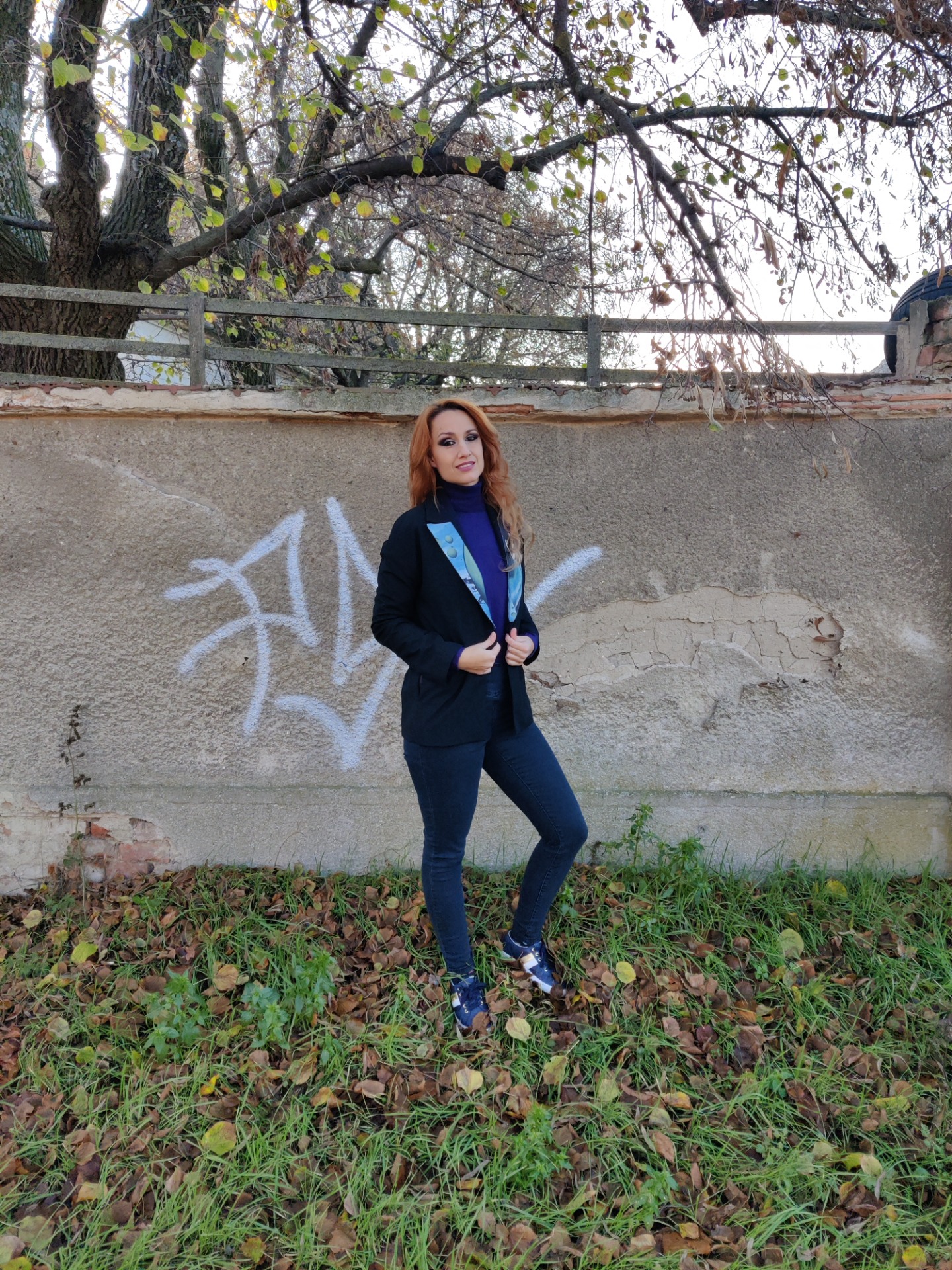 Sako je dostupné len ako 1 ks. Každý dizajn je jedinečný. Ide o upcyklovaný kus oblečenia, ktorému bol vdýchnutý nový život.